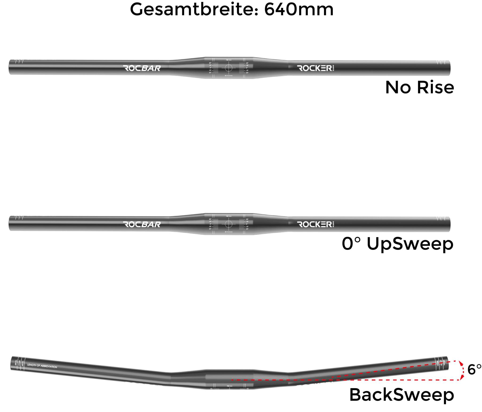 The flat shape of the RocBar Flat 640/060 O 31.8 mm This handlebar not only ensures a sporty riding position but also maximum riding comfort. Its geometry promotes a sporty posture. Whether you're tackling challenging trails or cruising comfortably through the city, this handlebar makes every ride a pleasure. It's the perfect complement to our innovative stems. With its 640 mm width, 0 mm rise, 0° upsweep, and 6° backsweep, it provides a sporty yet wrist-friendly riding position on any trail. The handlebar can be easily cut down to 600 mm. Bicycles with a 35 mm stem clamp can use our stems with this handlebar.
